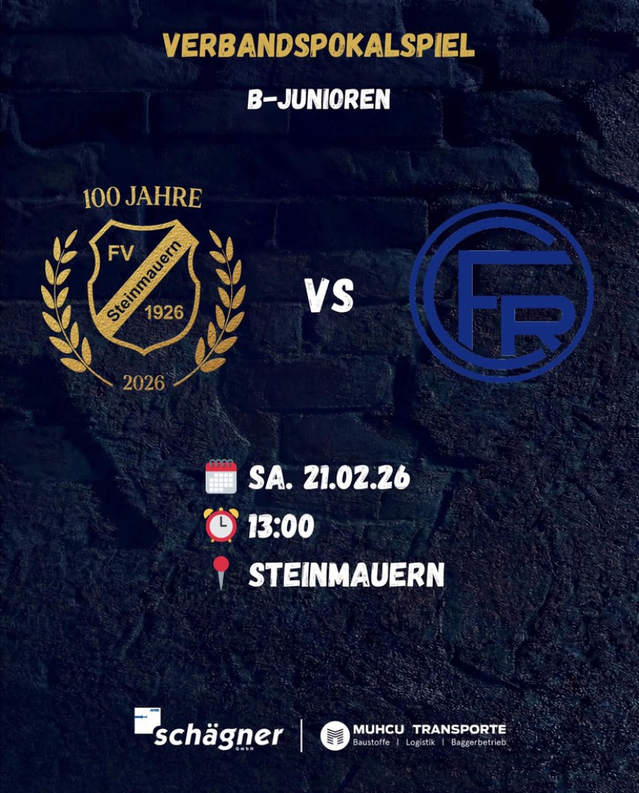 Es ist angerichtet für ein echtes Topspiel: Zwei ambitionierte Mannschaften, K.o.-Modus, Flutlicht-Atmosphäre im Februar – mehr Fußball-Emotion geht kaum. Dieses Spiel sollte man auf keinen Fall verpassen! Kommt vorbei, unterstützt die Jungs und erlebt echtes Pokal-Feeling am Sportplatz Steinmauern!